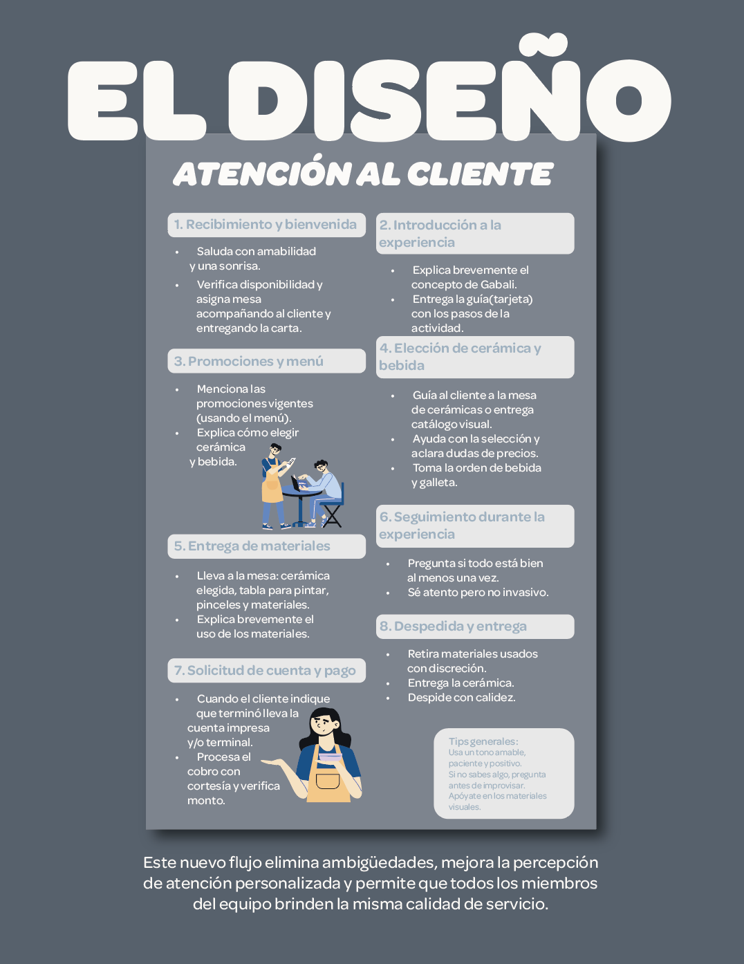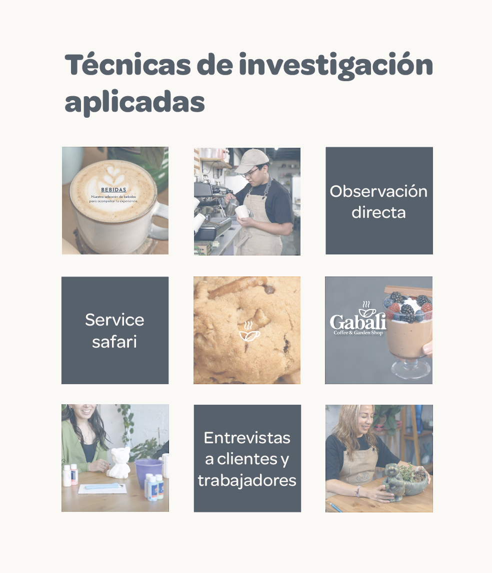 Investigación, diagnóstico y rediseño del servicio de Gabali, una cafetería creativa donde los clientes pintan cerámica mientras disfrutan bebidas y alimentos.
